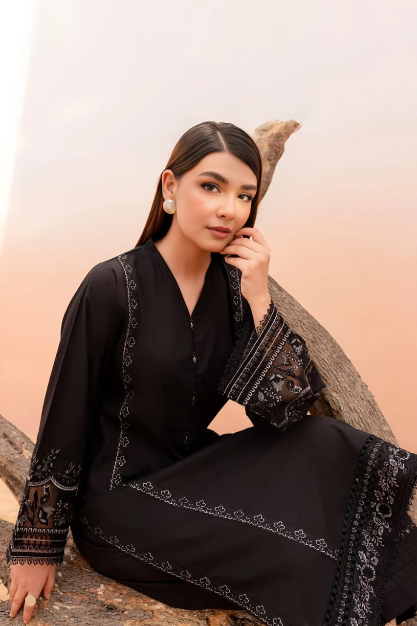 Discover timeless charm with Noir Bloom, a premium black cotton kurti designed for the modern Pakistani woman. Crafted from soft breathable cotton, this embroidered masterpiece blends comfort and elegance, making it perfect for summer soirées or casual outings.